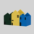 • Three vibrant compartments shaped like cheerful little houses.
